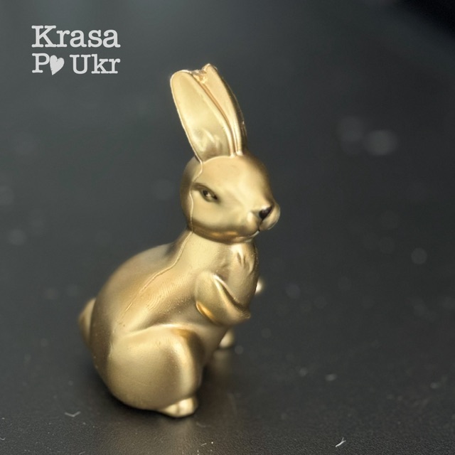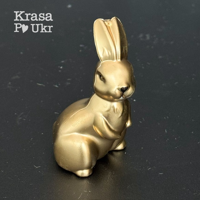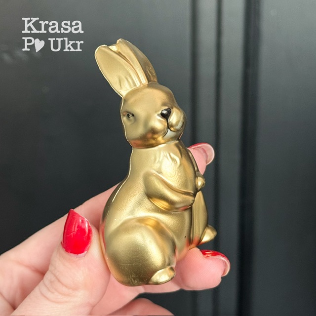 - Декоративна фігурка зайчика у матовому золотому кольорі. Виготовлений із пластику, має гладку поверхню та компактний розмір. Підходить для великодніх композицій, декору столу або святкових інтерʼєрних акцентів