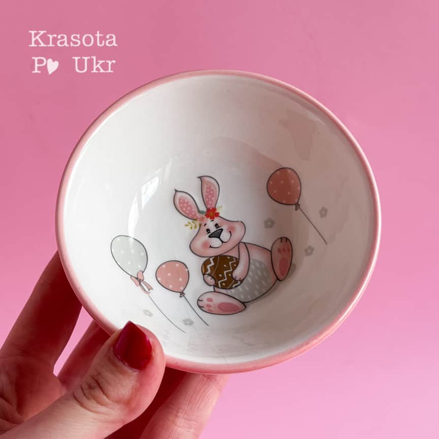 Тарілочка та піала “великодній зайчик”, пудра (набір або поштучно)