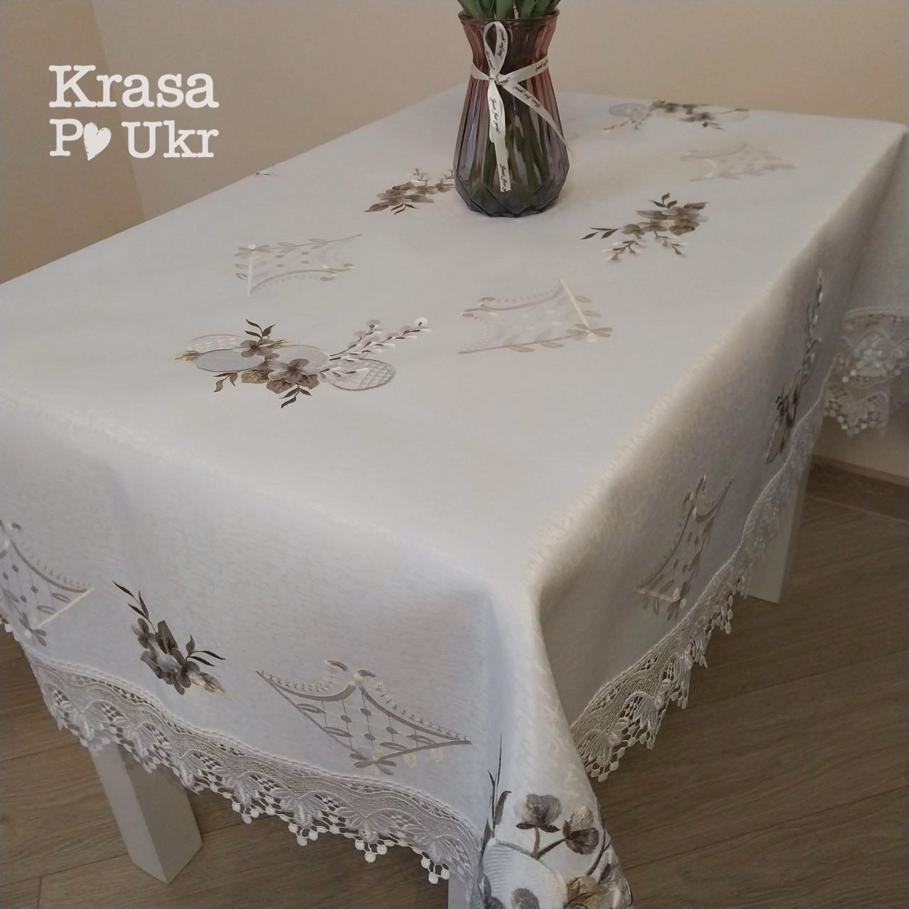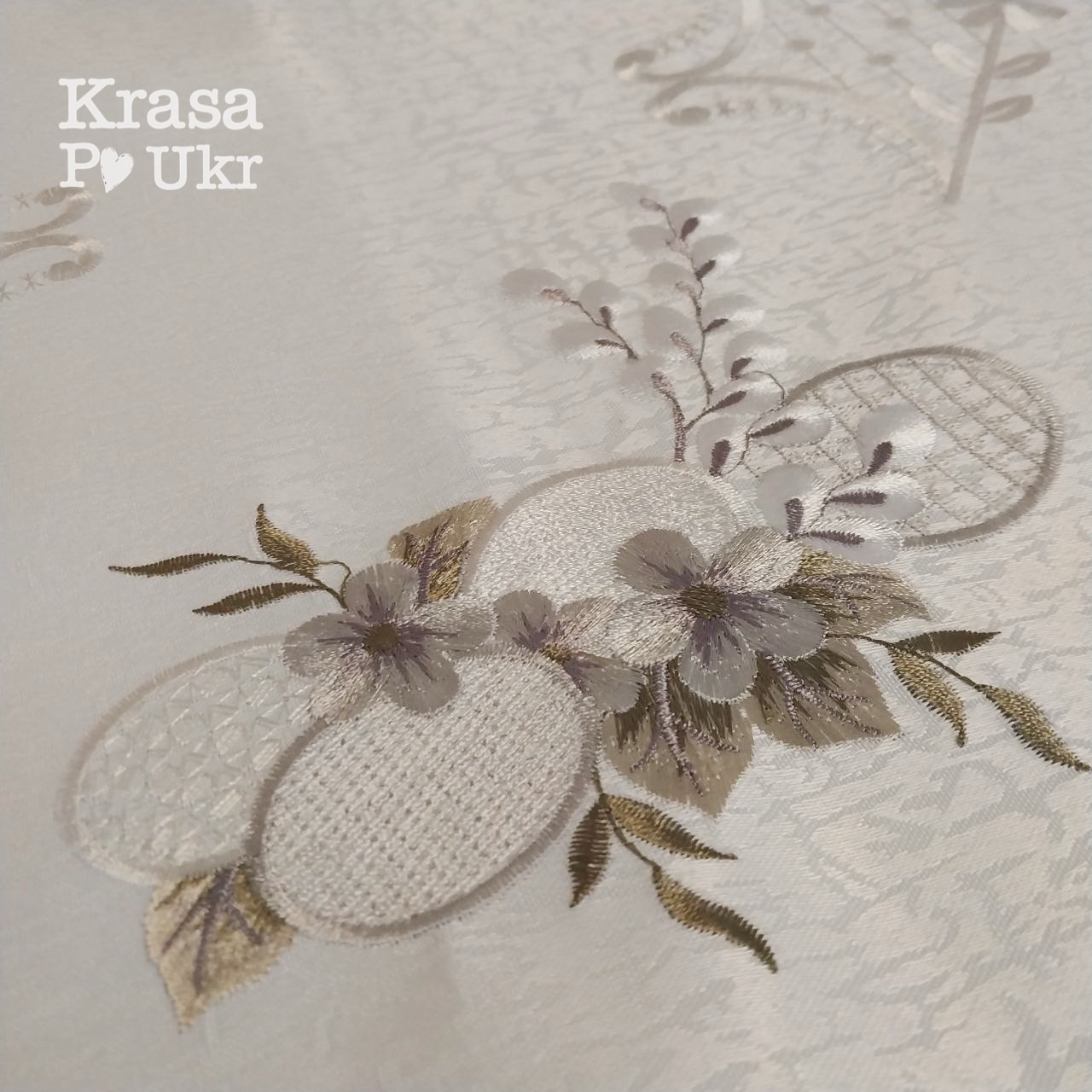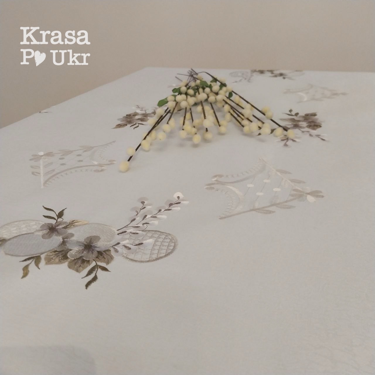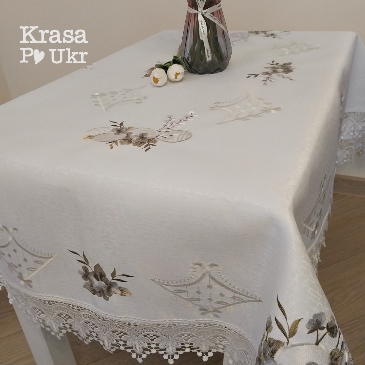 #380 Пасхальна скатертина з вишивкою – «монохромні писанки» в сірому –110*160 см, 135*180 см,150*220 см