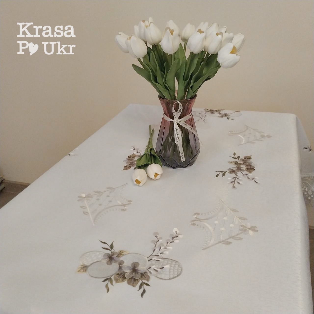 Матеріал щільний, якісний, красиво лягає на стіл та добре тримає форму. Підійде як для великоднього столу, так і для сучасного інтер’єру в мінімалістичному стилі.