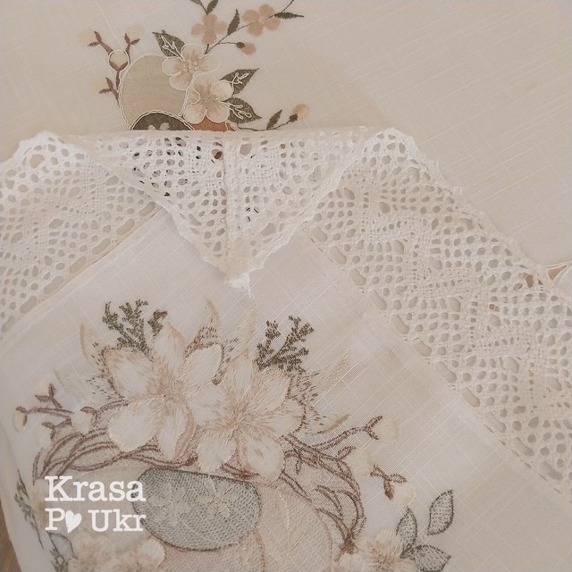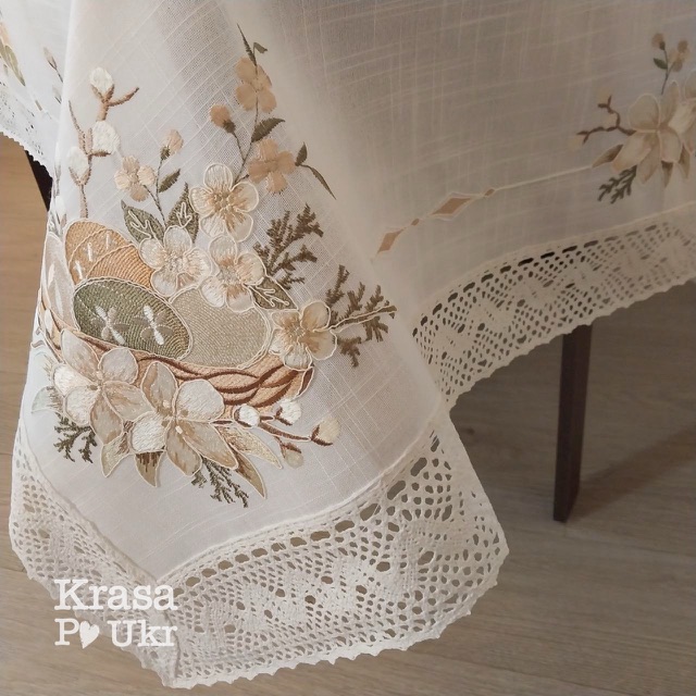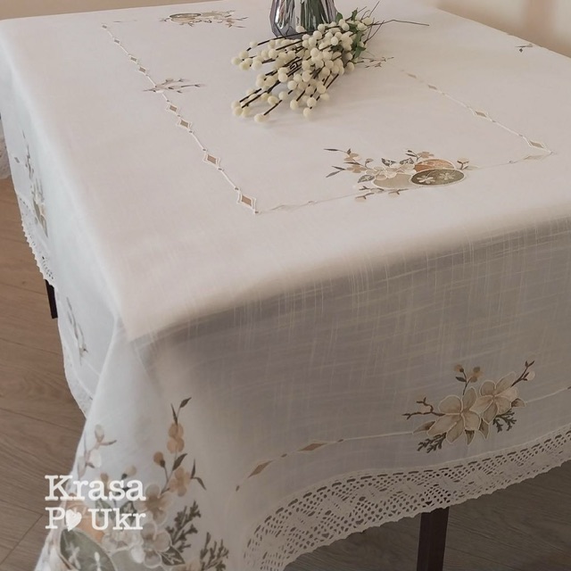 - Скатертина прямокутної форми, виконана з якісного матеріалу, який гарно тримає форму та красиво лягає на стіл.