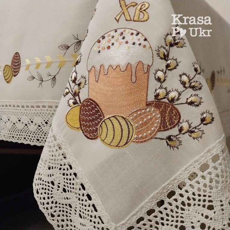 Лляна біла скатертина з вишивкою, дизайн “великодній мінімалізм” – 110*160 см, 135*180 см, 150*220 см