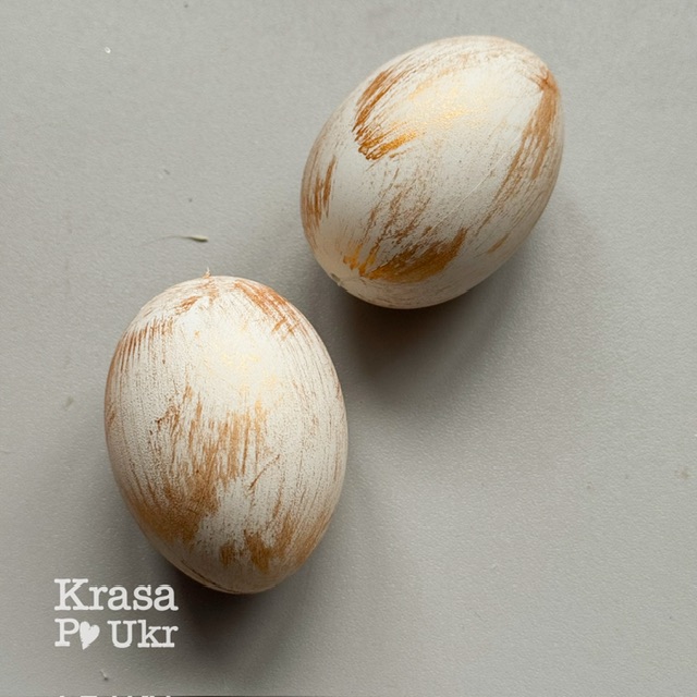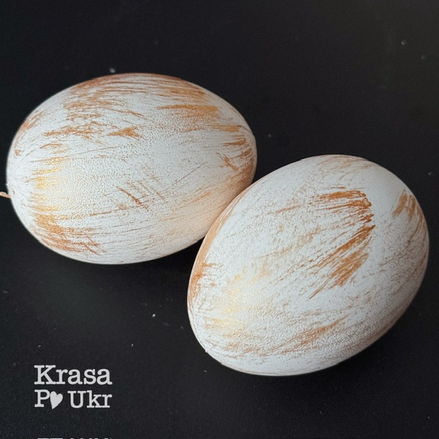 Великодня писанка для декору – біла з золотими мазками фарби – 6 см, 1 шт, 10 шт, 25 шт