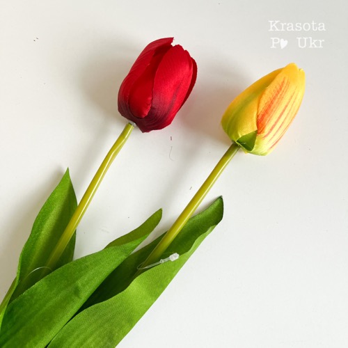 - розмір – висота загальна 54 см, висота зелені з квіткою 30 см, головка тюльпана 6 см