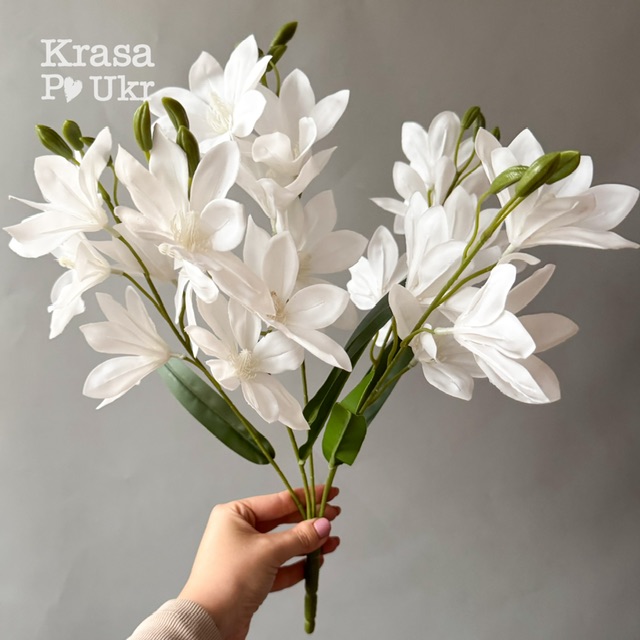 Букет 45 смабо гілка 35 см “лілії”латексна в білому кольорі