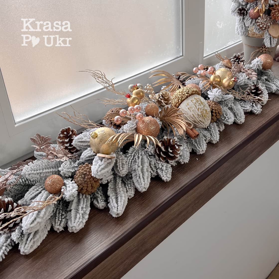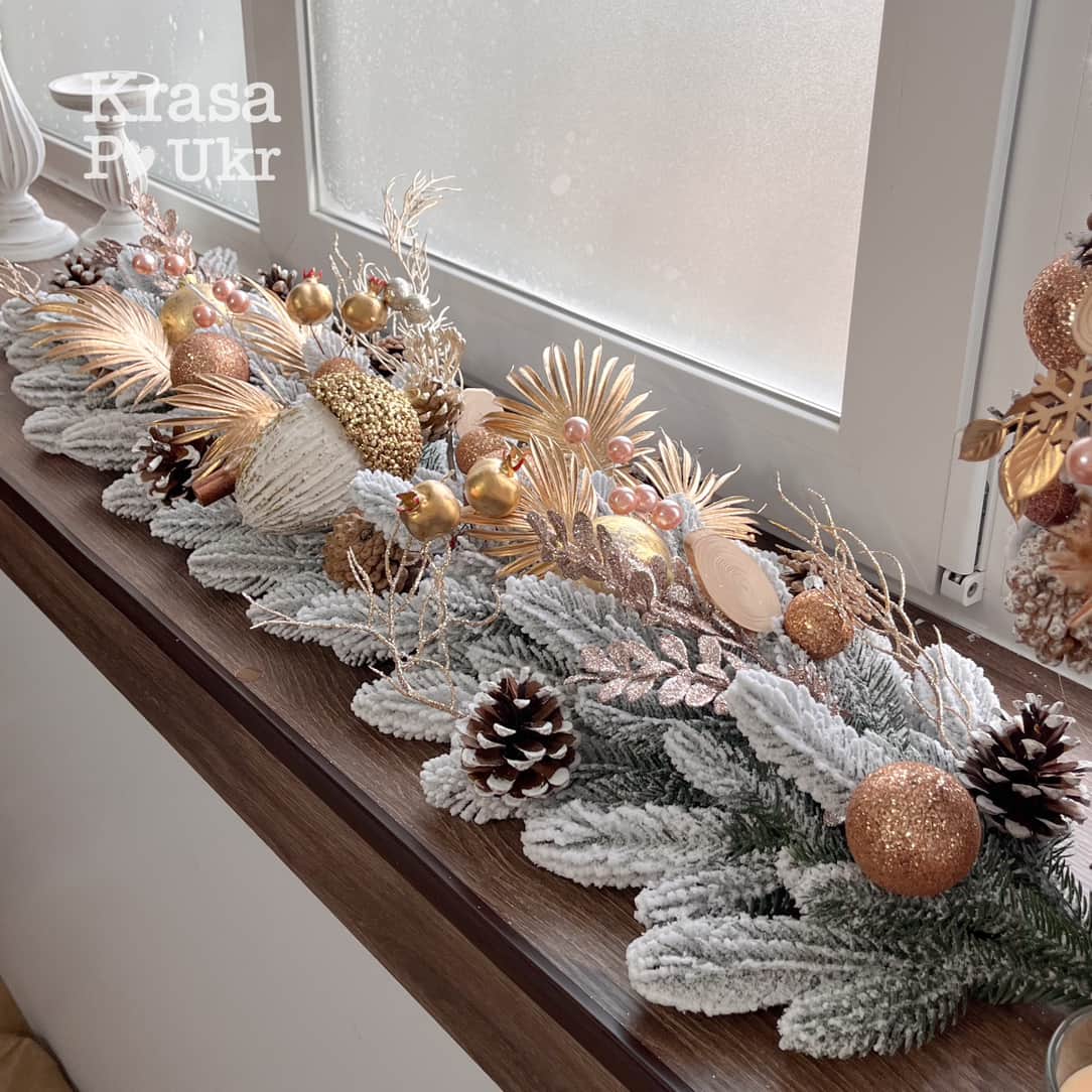 - гірлянду зібрано з гілок литої засніженої хвої