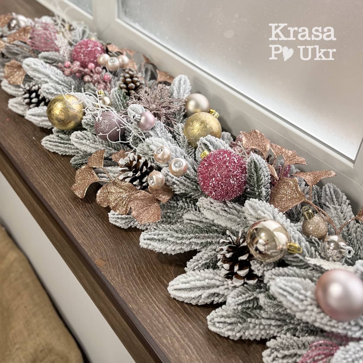 - Даний товар Новорічна гірлянда з засніженої хвої, дизайн “пудра-шампань” (1 м)(1650,00 грн.)