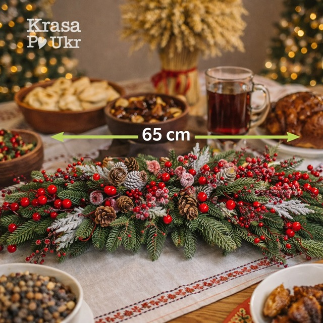 Гірлянда-композиція 65 см або 120 см, колекція «Різдвяна класика», дизайн “розкішний ягідний”