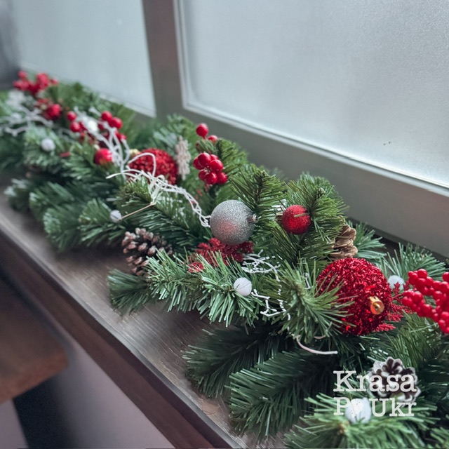 Новорічна гірлянда з нотками срібла, колекція “Різдвяна класика”, дизайн “червоне-срібло” – 2 варіанта декору