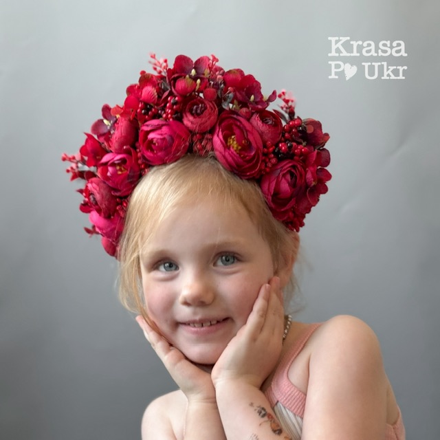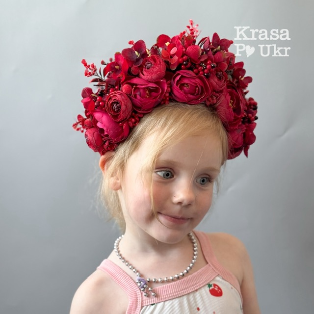 Вінок “моя вишиванка” на голову – у червоно-бордовому поєднанні