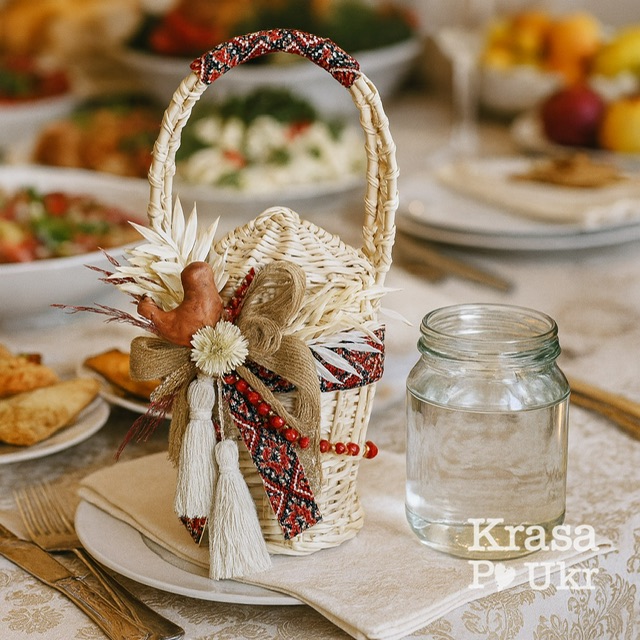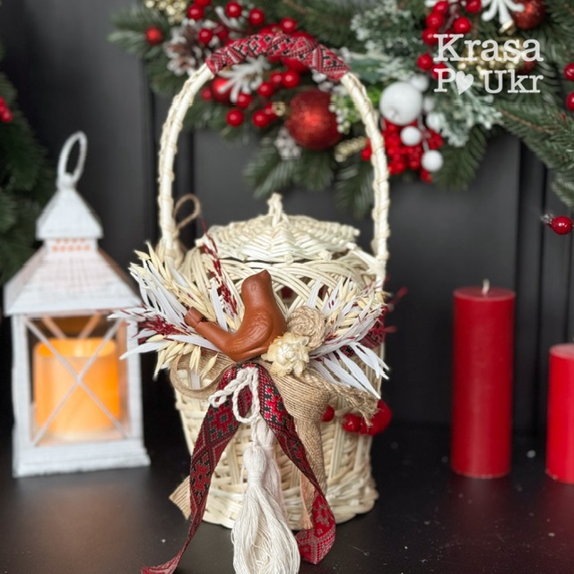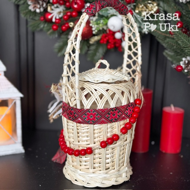 Кошик на банку до Водохреща, дизайн “українська вишиванка” (1 л)