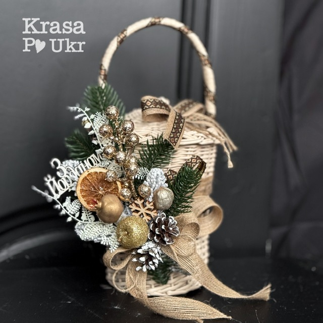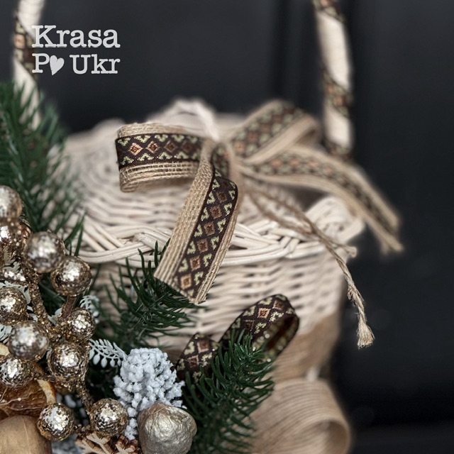 Кошик на освячення для 1 л банки, дизайн “Ароматне Різдво” до Водохреща, фарбований – ванільний