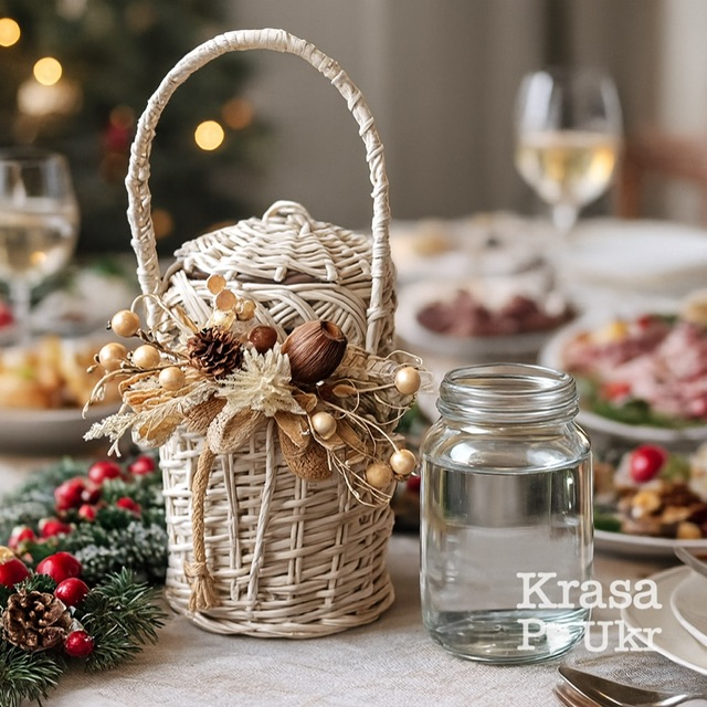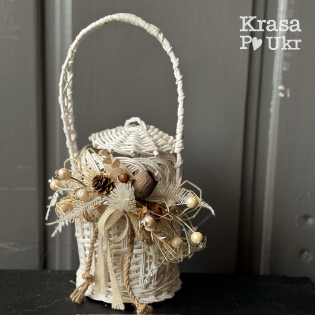 Йорданський кошик з декором (750 мл, 1 л, 2 л), білий – дизайн “натуральна гармонія”