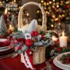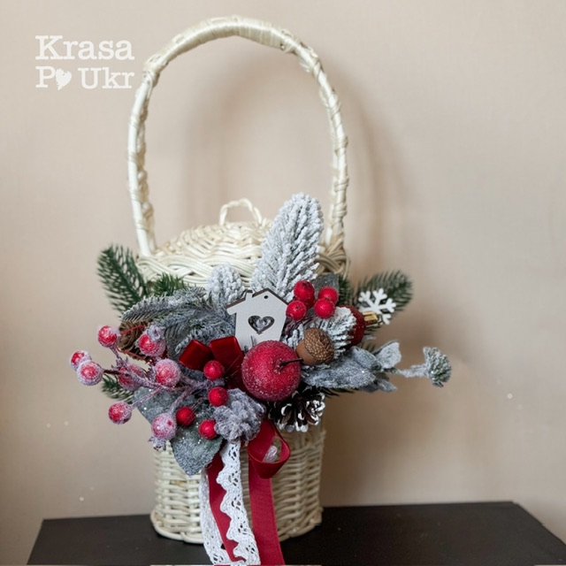 Корзинка для 1 л баночки, вибілена, дизайн “різдвяна класика” з цукровим яблучком