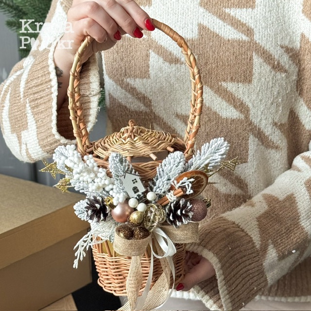 Корзинка натуральна на Водохреща (1 л), дизайн “Ароматне Різдво”