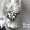 Декорація виготовлена вручну майстернею Krasa Po Ukr з поєднанням декоративної хвої, ягід, шишок, перлинних і сріблястих акцентів, текстилю та мережива. Центральним елементом композиції є напис «З Водохрещем». Біло-срібна гама виглядає ніжно, святково й водночас універсально — пасує як до вибілених, так і до натуральних кошиків з лози.