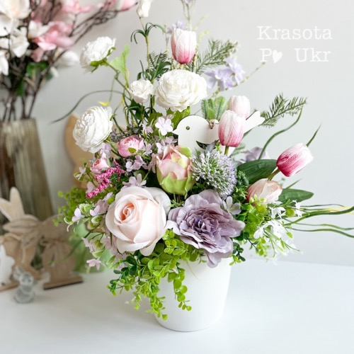 Велика весняна композиція у керамічному кашпо, дизайн “квітковий букет”