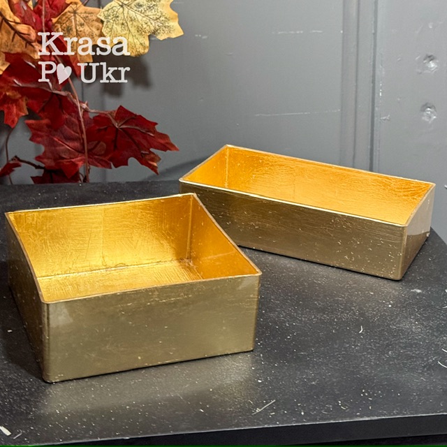 Золоті кашпо для новорічних флористичних композицій (квадратне 14.5 см або прямокутне 20*10 см)