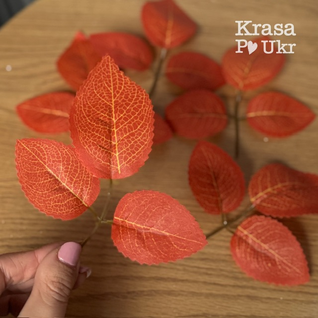 Стильне штучне листя в теракотових відтінках створює атмосферу осіннього затишку й природної гармонії. Ідеально підходить для оформлення святкових композицій, вінків або сезонного декору дому. М’які кольори, що нагадують опале листя, додають тепла й глибини будь-якому осінньому дизайну. Легке, гнучке, з імітацією натуральної текстури.