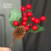 Декоративна гілка з червоними ягодами та шишкою