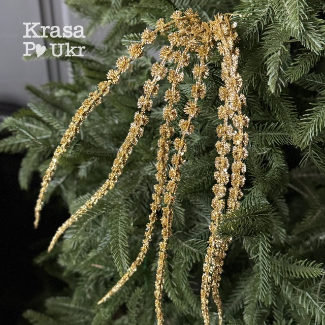 Декоративна гілка “каскадна золота” стане чудовим вибором для створення святкового настрою у вашому домі, вітрині магазину, офісі чи фотозоні.
