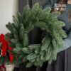 Діаметр вінка становить до 40 см, а висота — до 16 см, що робить його оптимальним за розміром як для дверей. Лита хвоя виглядає максимально натурально — голочки мають приємну на дотик текстуру, щільне розташування та природний зелений відтінок.