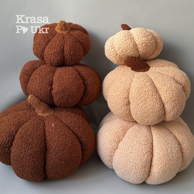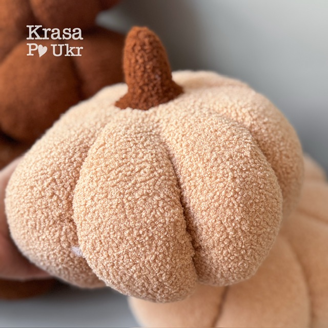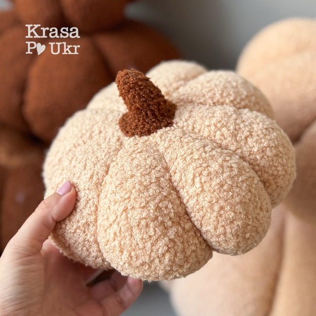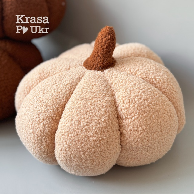 Гарбуз-подушка декоративна з тканини “букле” – (20 см, 30 см, 36 см) – пряжене молоко