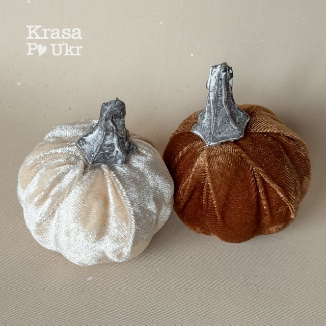 Велюрові гарбузи 7*8 см – пастельний та шоколадний -2 шт