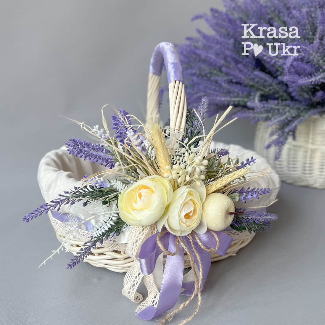 Кошик 30 см до Спаса, модель “овал”, дизайн “півонії-яблуко-лаванда” (з чохлом або без) ?