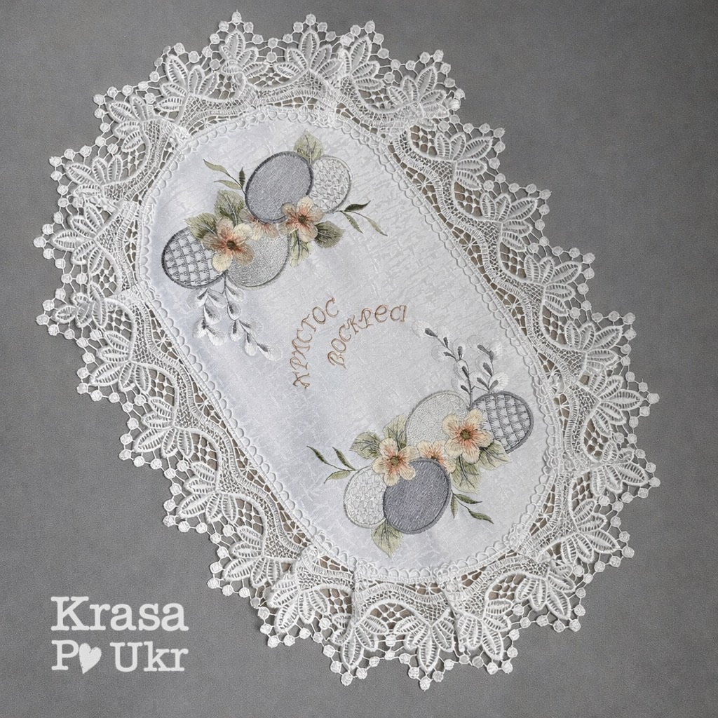 Біла атласна накривка на корзинку (42*30 см) “монохромні писанки” в сірому