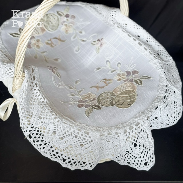#525 Рушник на кошик, білий льон – «Весняна пастель» (60×40 см), атлас
