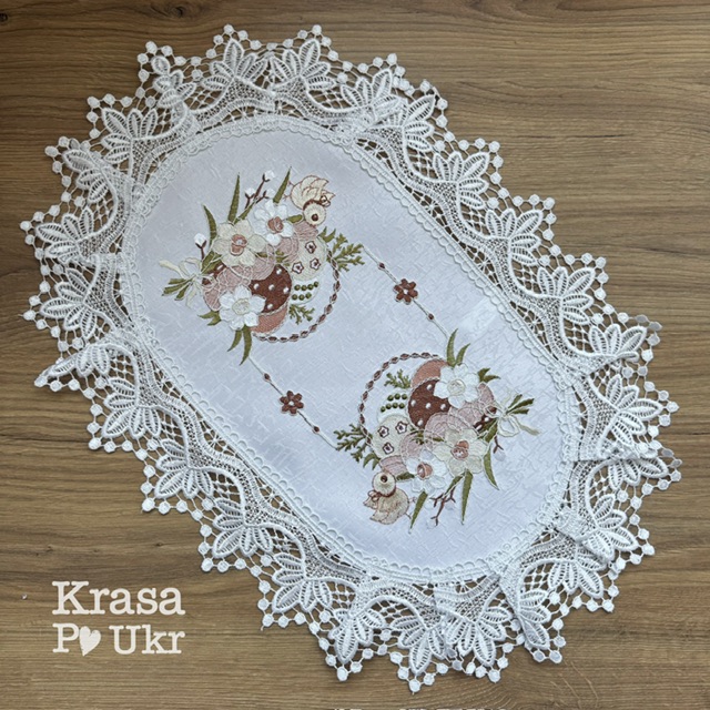 1 відгук для Вишитий рушник на корзинку, дизайн “корзинка з пудровими писанками” (42*30)