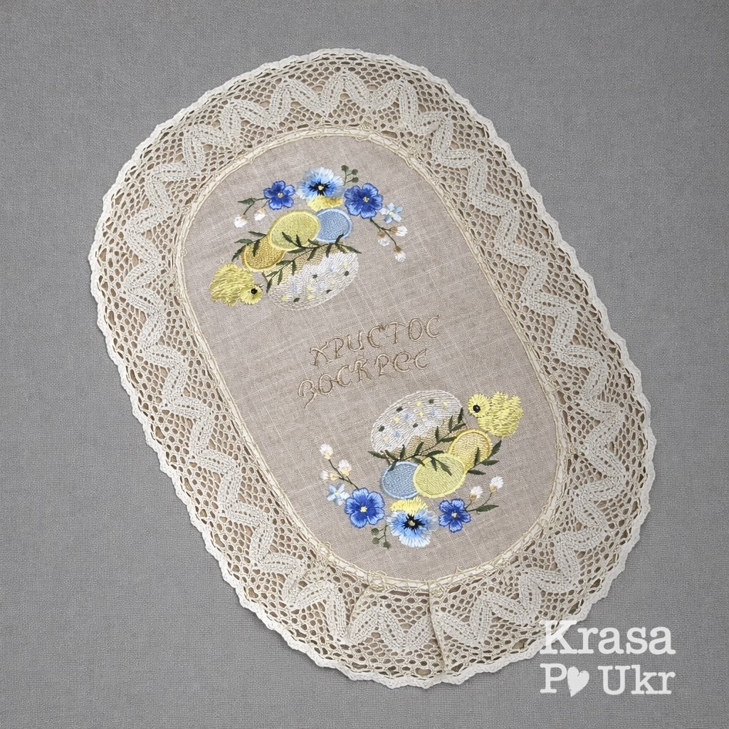 #348A еликодня вишита серветка з українською палітрою 45*30 см, “Патріотичний великдень” – льон