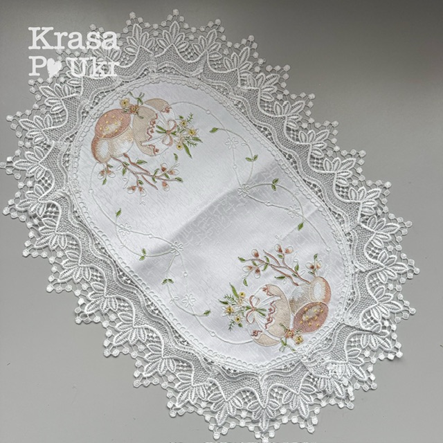 1 відгук для Вишитий рушник на кошик 60*40 см, «ніжні писанки» – атлас