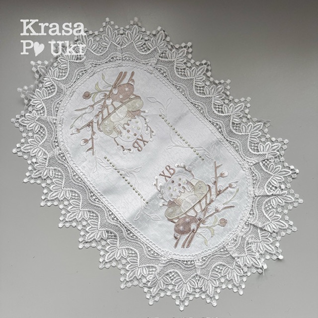 Серветка на кошик на Великдень – 60*40 «світла великодня корзинка» – з білим мереживом