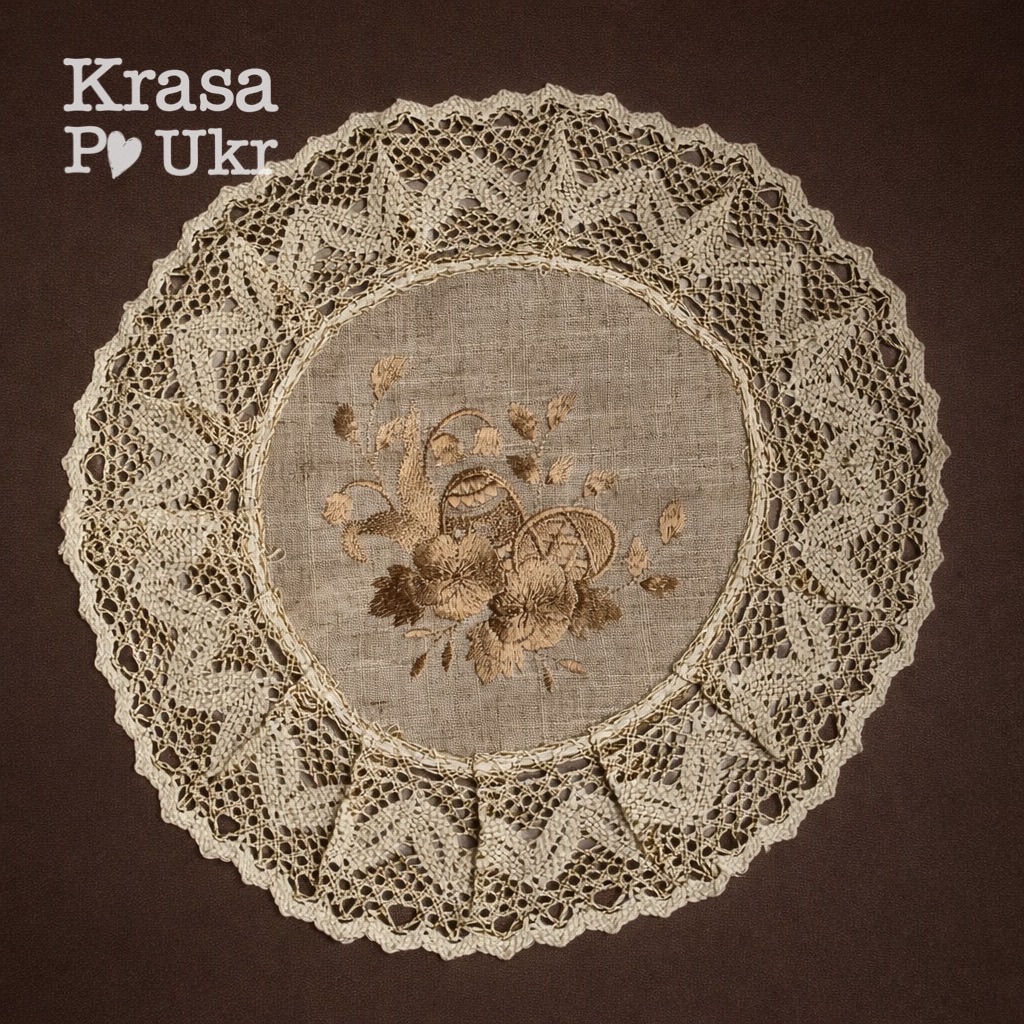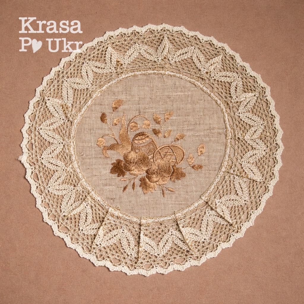 Лляна серветка на дитячий кошик “кофейні писанки” (30 см)
