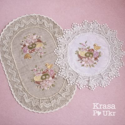 Великолня вишита серветка на середній кошик «Пастельна пасочка» 42*30 см