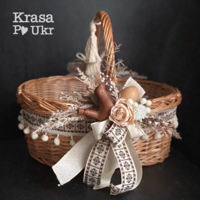 Середній вишитий рушник на кошик до Великодня – 42*30 см, з вишивкою “світле свято”