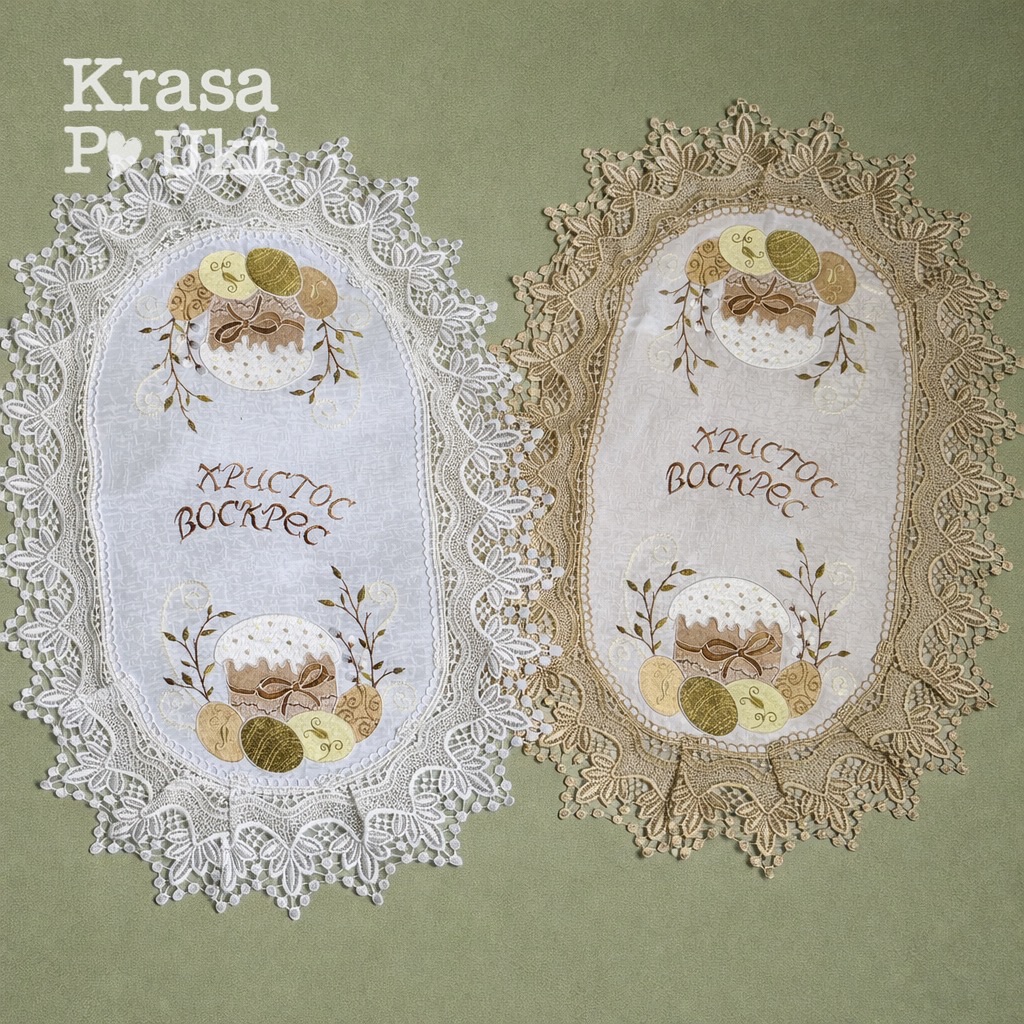 Вишитий рушник “оливкова пасочка”, атлас (60*40 см) – з білим або золотавим мереживом