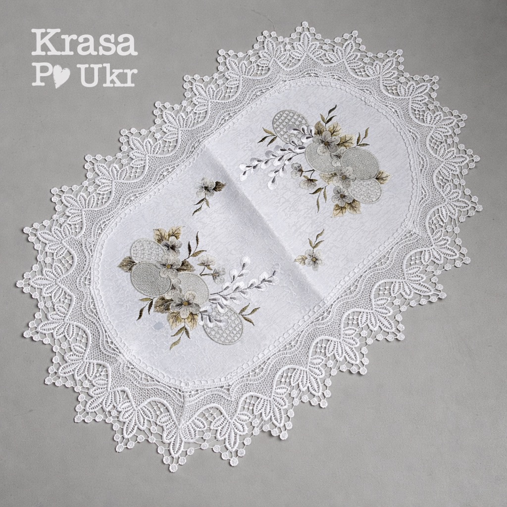 #380 Пасхальна серветка з вишивкою “монохромні писанки” (60*40 см), атлас