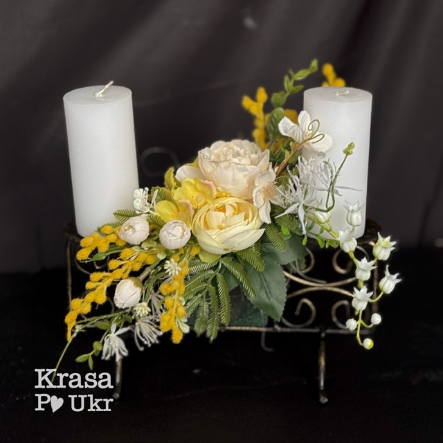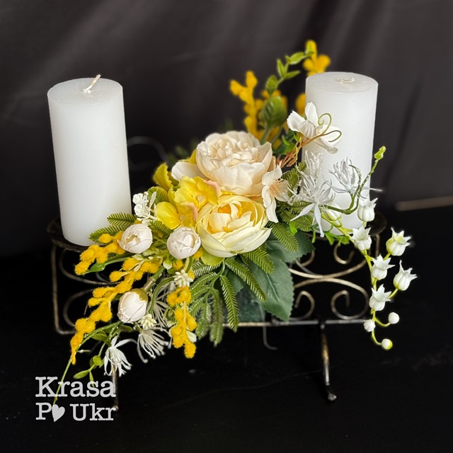 - основа – металічний свічник на дві свічки (білі по 10 см)