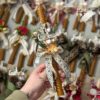 Стрітенська воскова свічка, дизайн “золоте благословення” з вишитою стрічкою