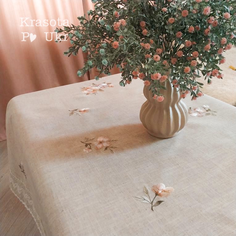 Лляна скатертина “Пастельні квіти” #841 –135*180 см, 150*220 см