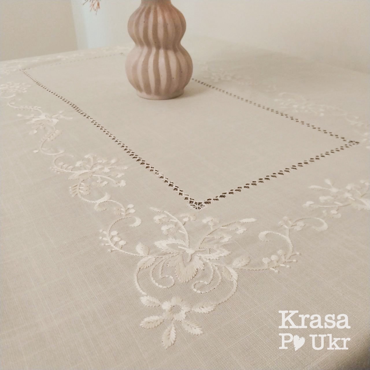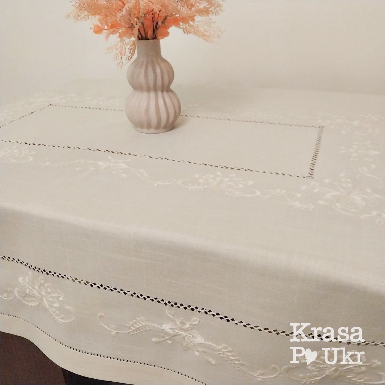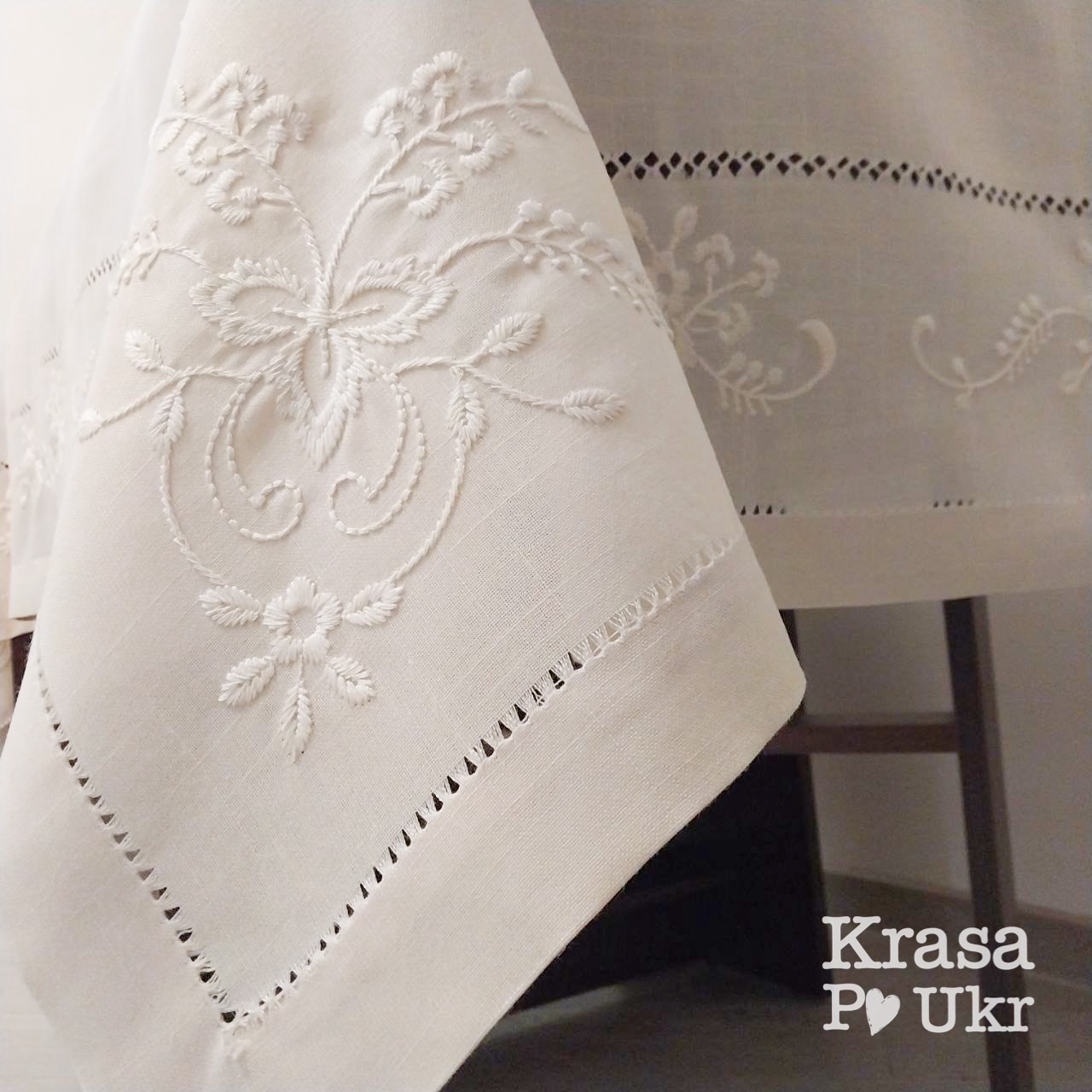 Край скатертини оброблений класичним кантом — рівним, лаконічним і позачасовим. Саме така обробка робить виріб універсальним і доречним у різних інтерʼєрах: від традиційного до сучасного мінімалізму.