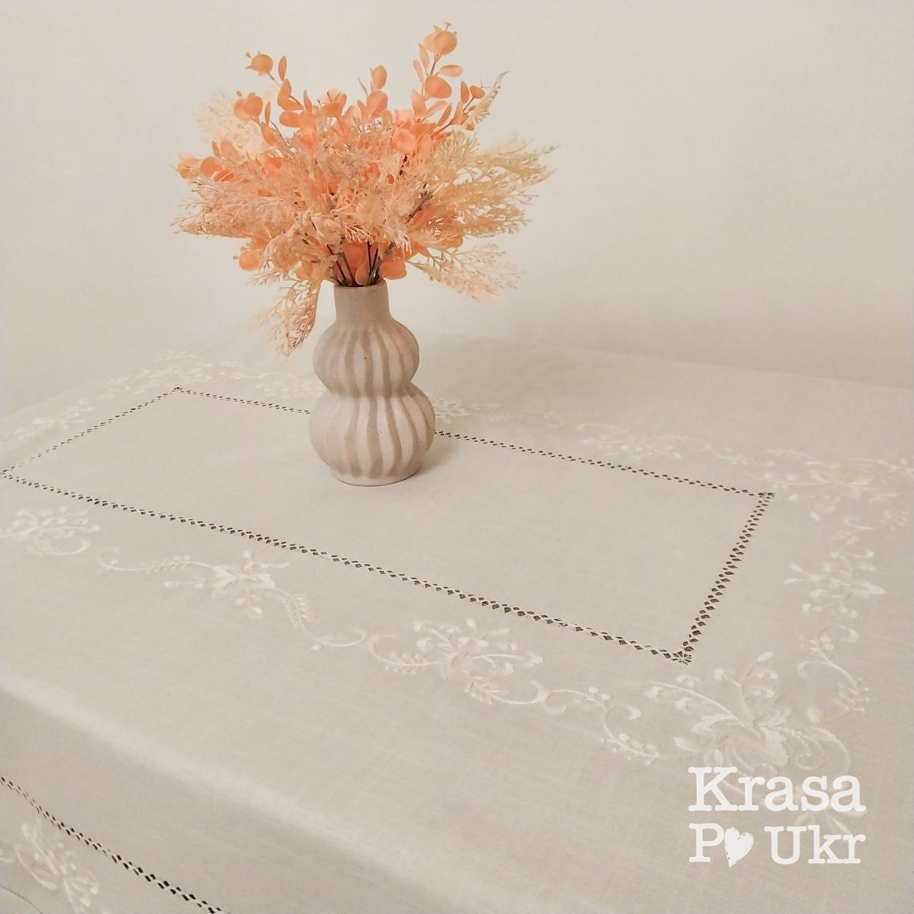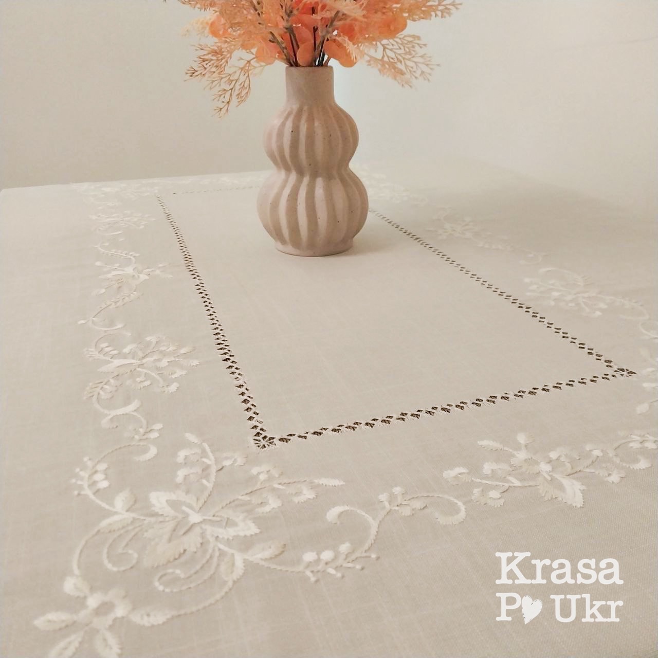 Біла лляна скатертина з вишивкою — це гармонійне поєднання класики, практичних матеріалів і стриманої декоративності. Вона створена як універсальний текстильний акцент, який однаково доречний і для святкового сервірування, і для повсякденного використання.