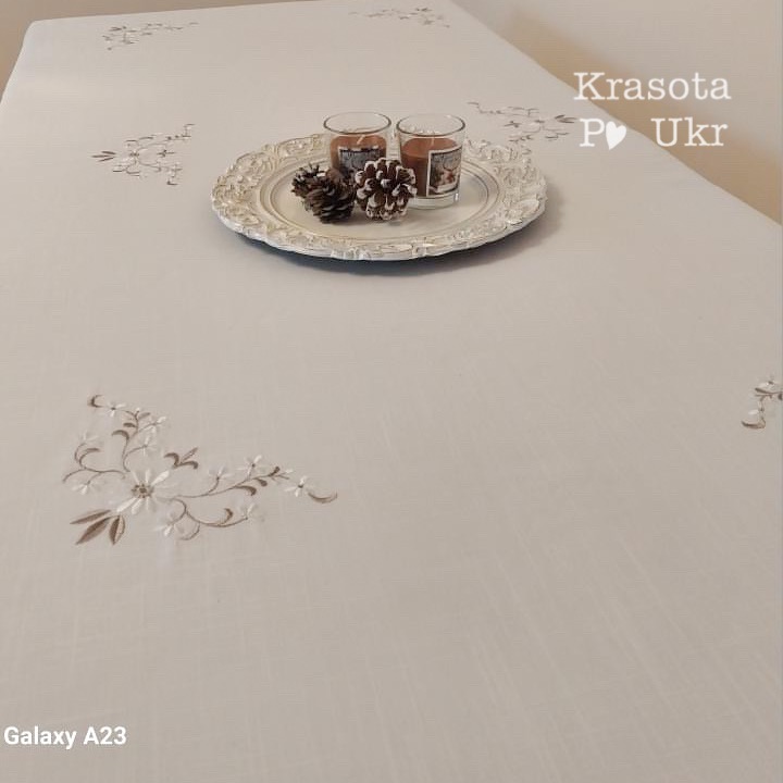 Скатертина кольору кави з молоком з вишивкою #13 (180*275 см)