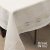 Біла лляна скатертина з ажурною мереживною вставкою — це поєднання чистоти кольору, практичний склад тканини і стриманої елегантності. Вона створена для тих, хто цінує світлий простір, гармонію деталей і позачасову класику в інтерʼєрі.