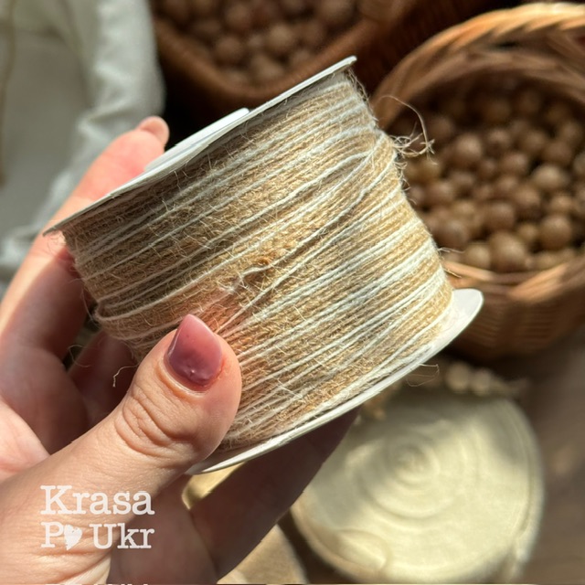 Стрічка з мішковини 0,6 см, Д30200, коричнево-молочна