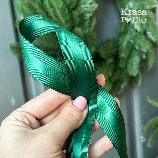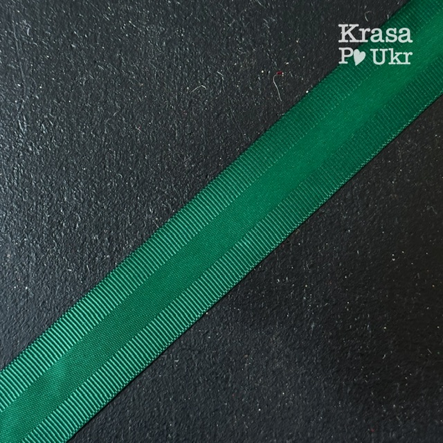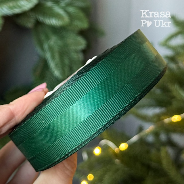 Стрічка репсова з атласною вставкою, 2,5 см, смарагд – 1 м або рулон 23 м