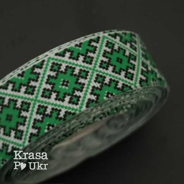 Декоративна стрічка “вишиванка”, зелена, 2,5 см (ціна за 1 м або рулон 23 м)
